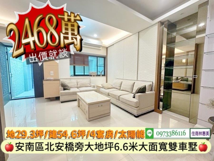 安南區北安富首世紀朝南大面寬雙併雙車墅